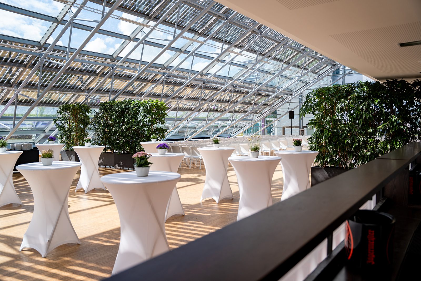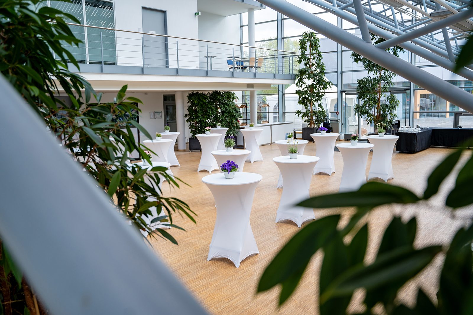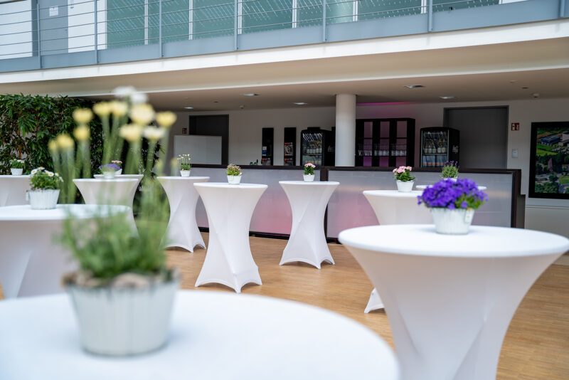 Um den Austausch und das Networking zu fördern, haben wir einen separaten Bereich mit Stehtischen eingerichtet. Hier lud eine elegante Bar mit Getränken und unser aufmerksames Servicepersonal die Gäste dazu ein, bei einem Glas in lockerer Atmosphäre ins Gespräch zu kommen. Ein abwechslungsreiches Buffet sorgte außerdem für das leibliche Wohl und bot eine Auswahl an köstlichen Speisen.