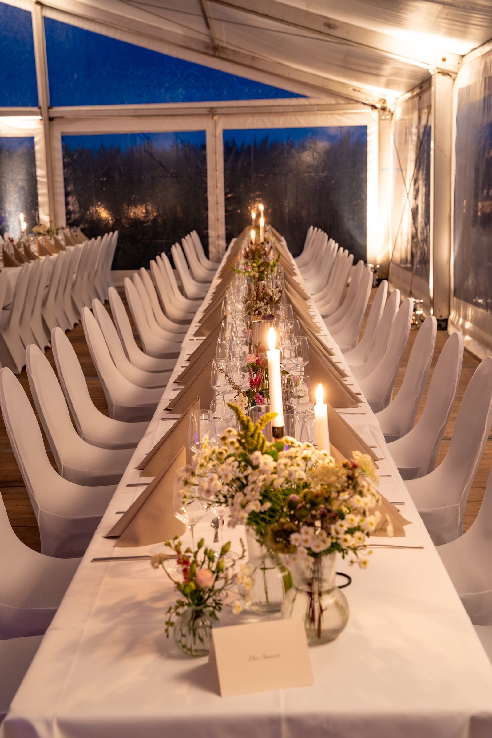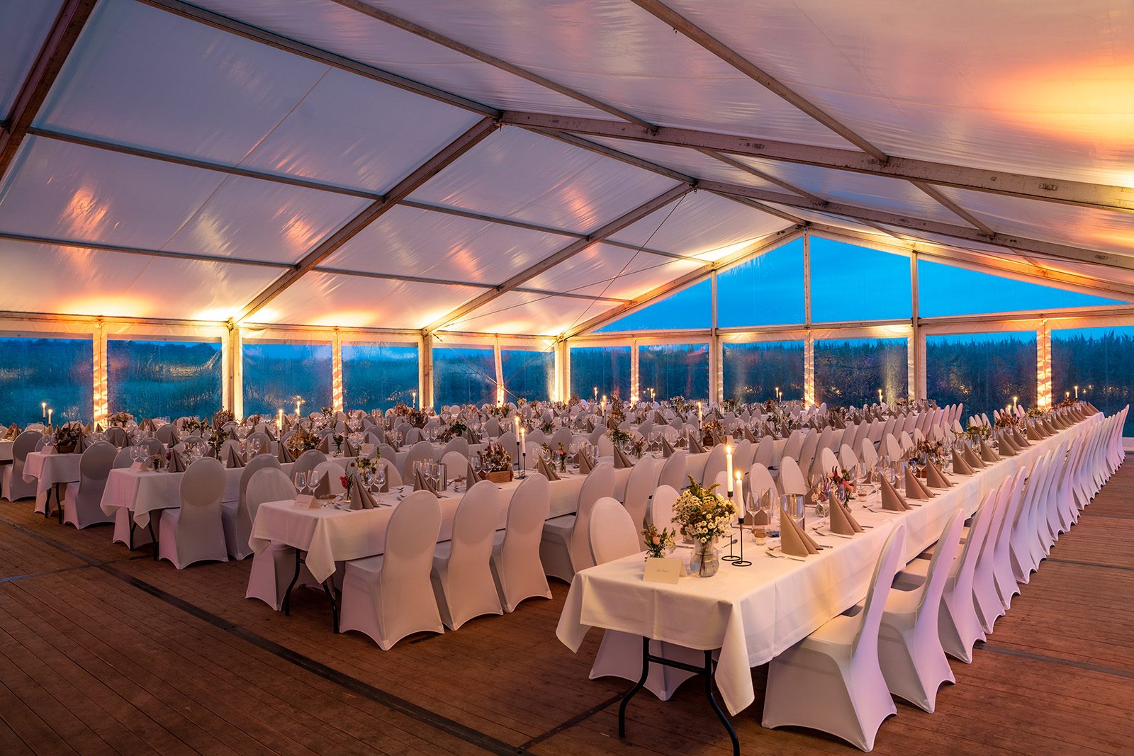 Dank der durchsichtigen Wände konnten die Gäste den Ausblick auf die Umgebung genießen und dabei das Gefühl von Offenheit und Freiheit erleben. Das natürliche Licht verlieh dem Zelt eine besondere Atmosphäre, die den festlichen Tag noch einmaliger machte.